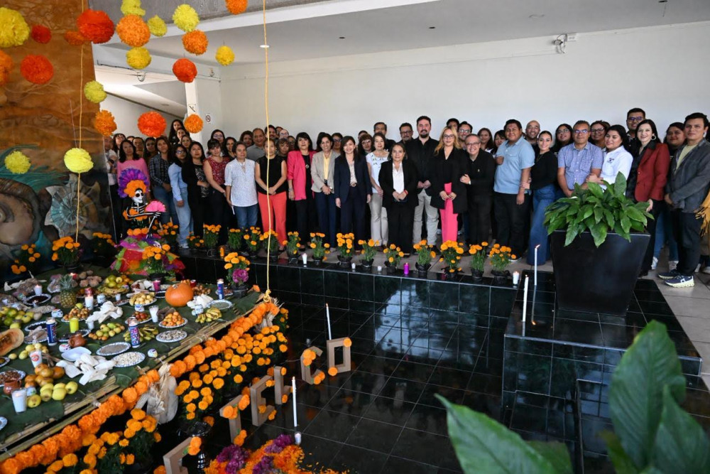 Asimismo, la rectora de la UAEM, Viridiana Aydeé León Hernández, visitó la ofrenda instalada en el vestíbulo de la Torre de Rectoría, según la tradición del pueblo de Coatetelco, Morelos, donde estuvo acompañada por las y los titulares de unidades académicas y administrativas universitarias.