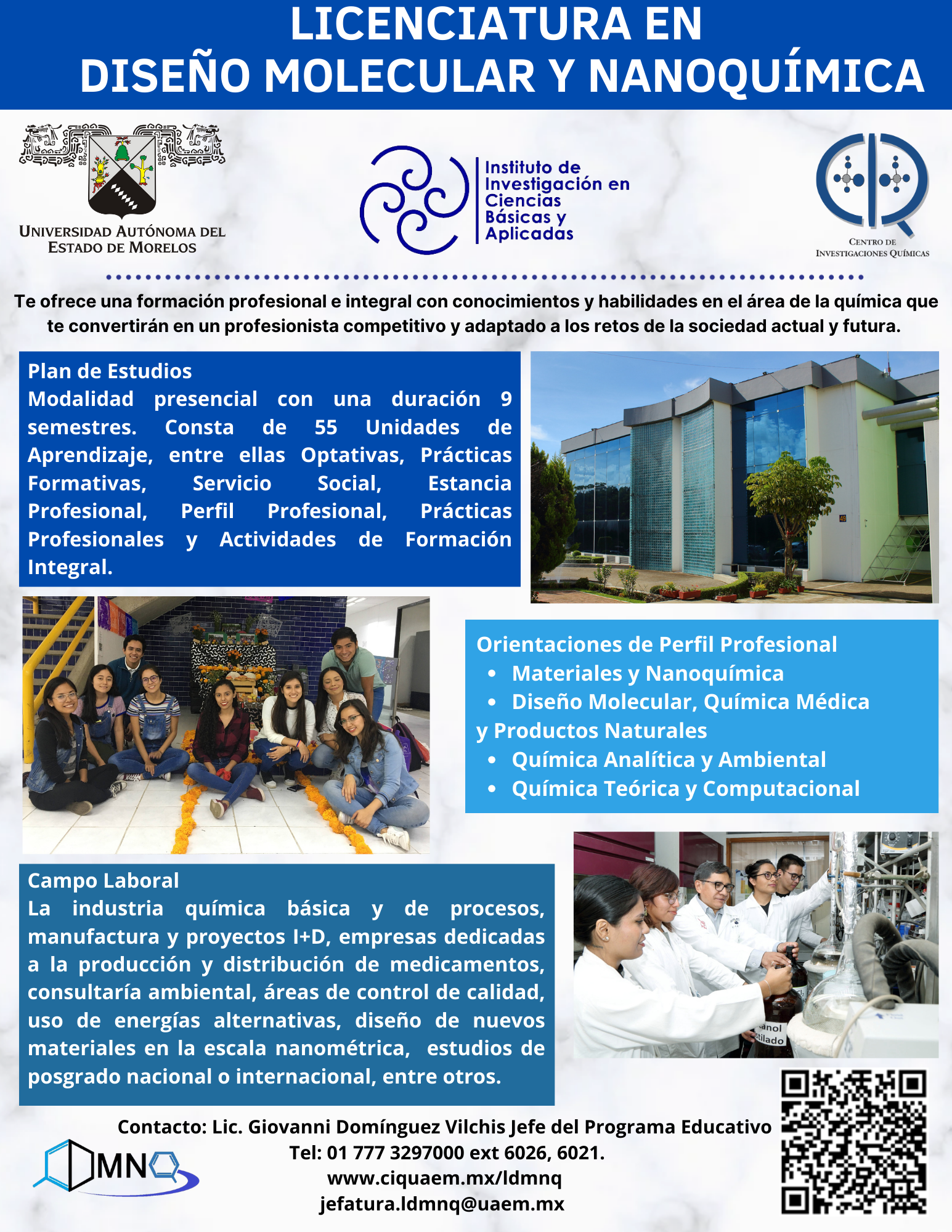 La Licenciatura en Diseño molecular y Nanoquímica tiene como objetivo responde al compromiso que tiene la UAEM para formar recursos humanos de alta calidad científico-técnica, con un alto compromiso ante los retos ambientales y sociales de su entorno.