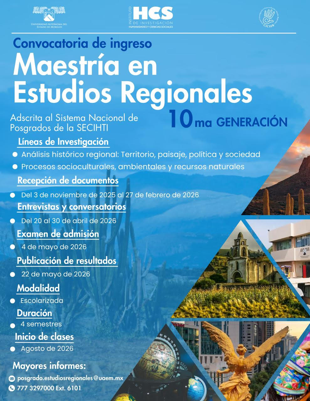 La Maestría en Estudios Regionales tiene como objetivo formar investigadores en Estudios Regionales que empleé contenidos teóricos y herramientas metodológicas aplicados en un proyecto de investigación multidisciplinar.