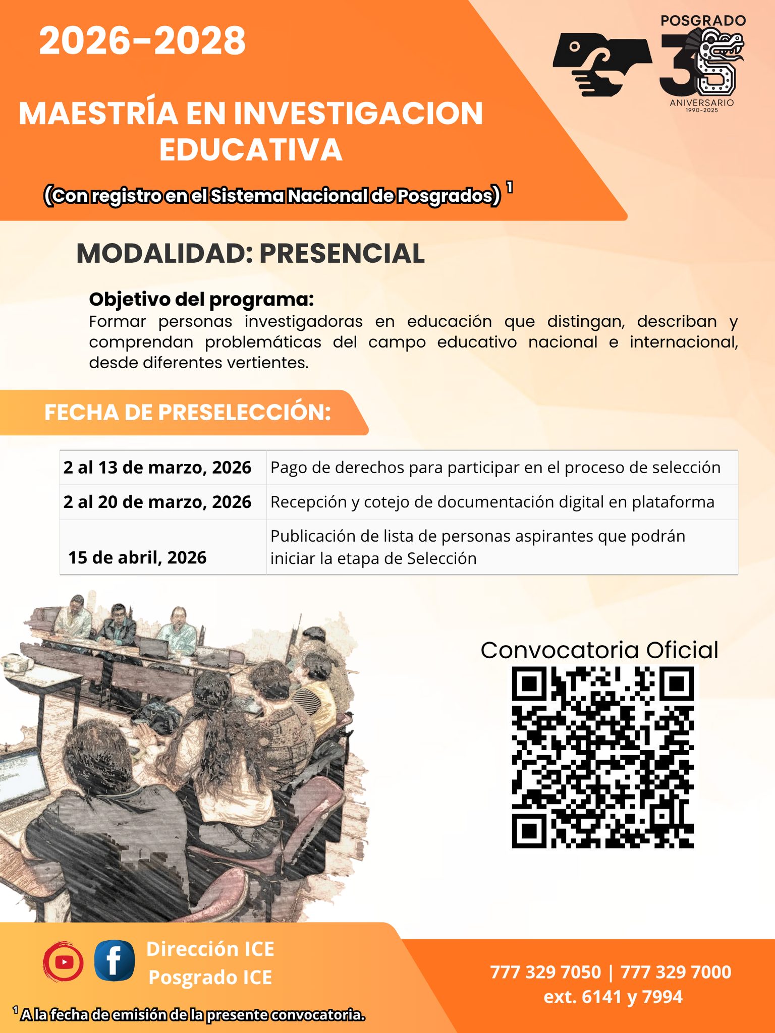 Próxima convocatoria: a publicarse en septiembre 2025 para dar inicio de clases en agosto 2026.