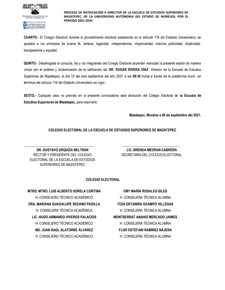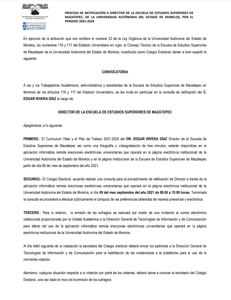 Proceso de ratificación a Director de la Escuela de Estudios Superiores de Mazatepec 2021-2024