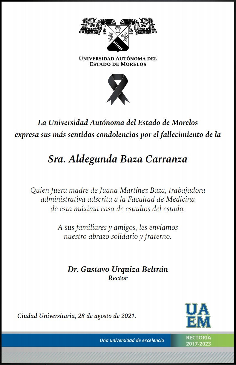 Esquela UAEM 28/08/21 | Sra. Aldegunda Baza Carranza