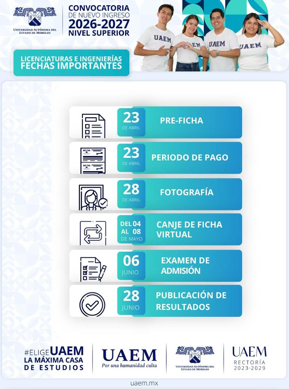 Cabe recordar que en la página electrónica institucional hay una sección de preguntas frecuentes para las y los aspirantes que requieran más información: https://www.uaem.mx/oferta-