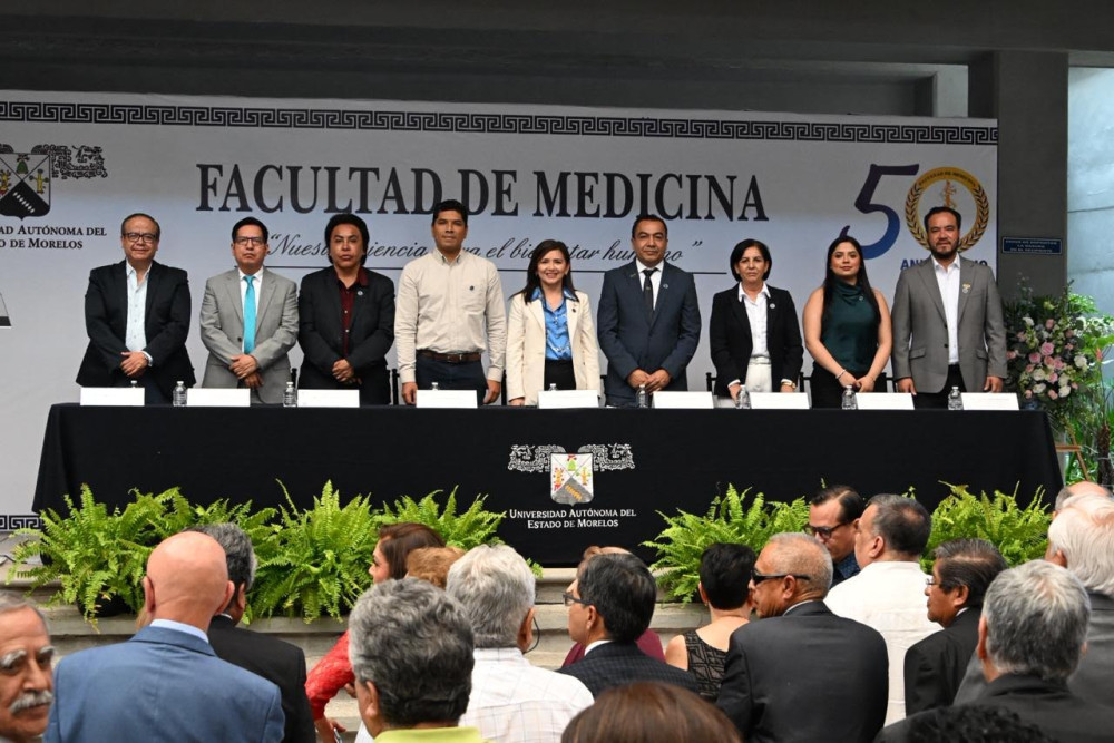 La Universidad Autónoma del Estado de Morelos (UAEM) celebró una ceremonia oficial con motivo del 50 aniversario de la Facultad de Medicina, institución que desde su fundación en 1976, ha fungido como pilar de la salud en la entidad.