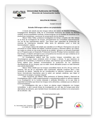 A través del estudio de tres hongos nativos del estado de Morelos, el Centro de Investigaciones Biológicas (CIB) de la Universidad Autónoma del Estado de Morelos (UAEM), busca propiedades nutritivas y biotecnológicas con la finalidad de beneficiar a los productores morelenses, y promover la conservación de los mismos.