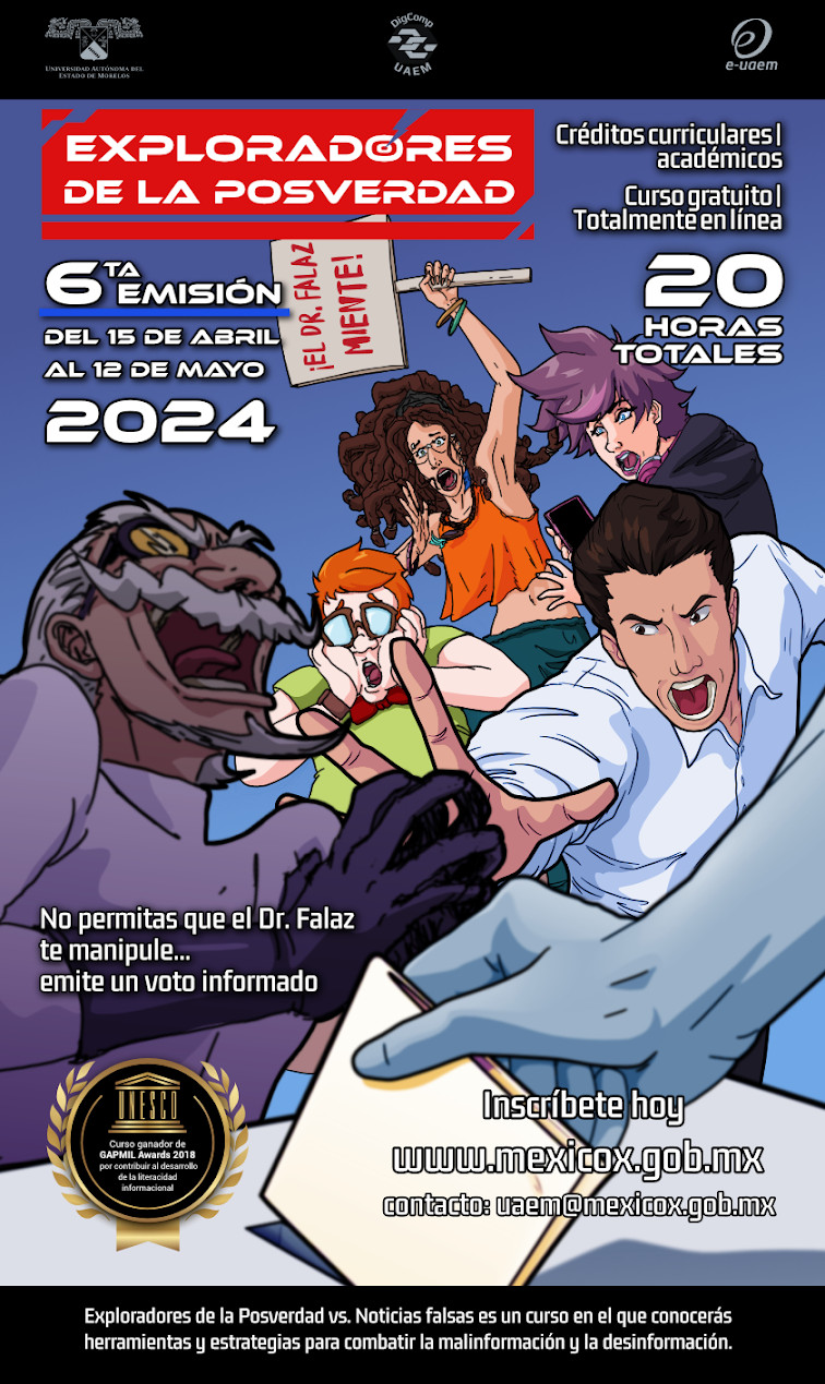 El MOOC de Exploradores de la Posverdad vs. Noticias Falsas, se ofrece por sexto año consecutivo y fue premiado en los GAPMIL Awards 2018 que otorga la Unesco a iniciativas destacadas que promueven el alfabetismo mediático e informacional.