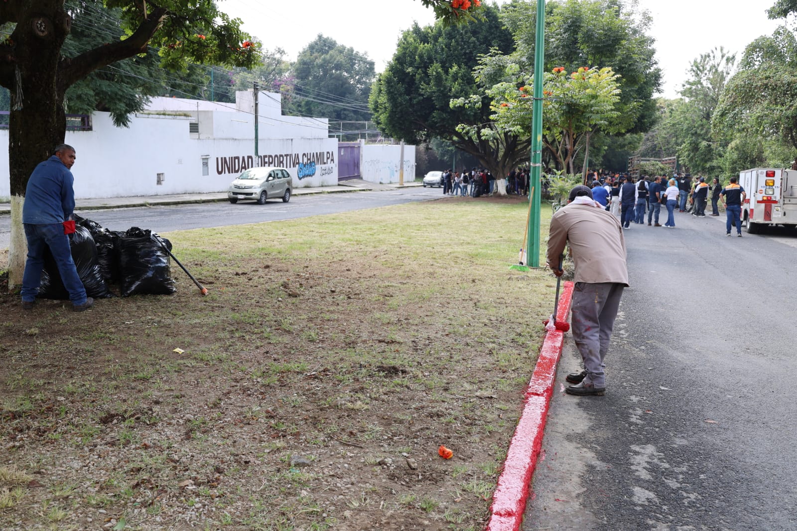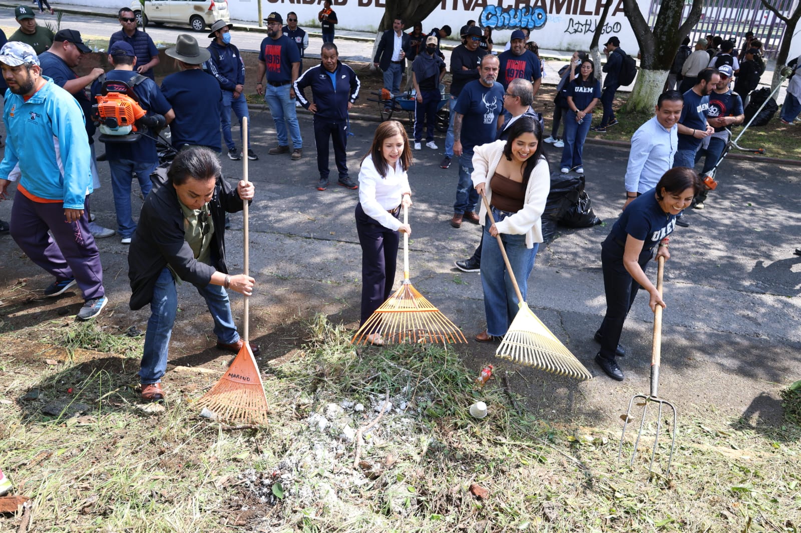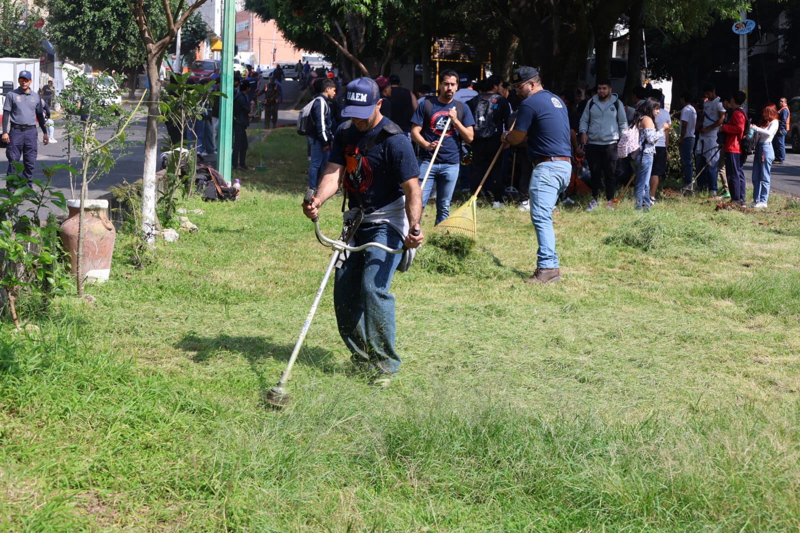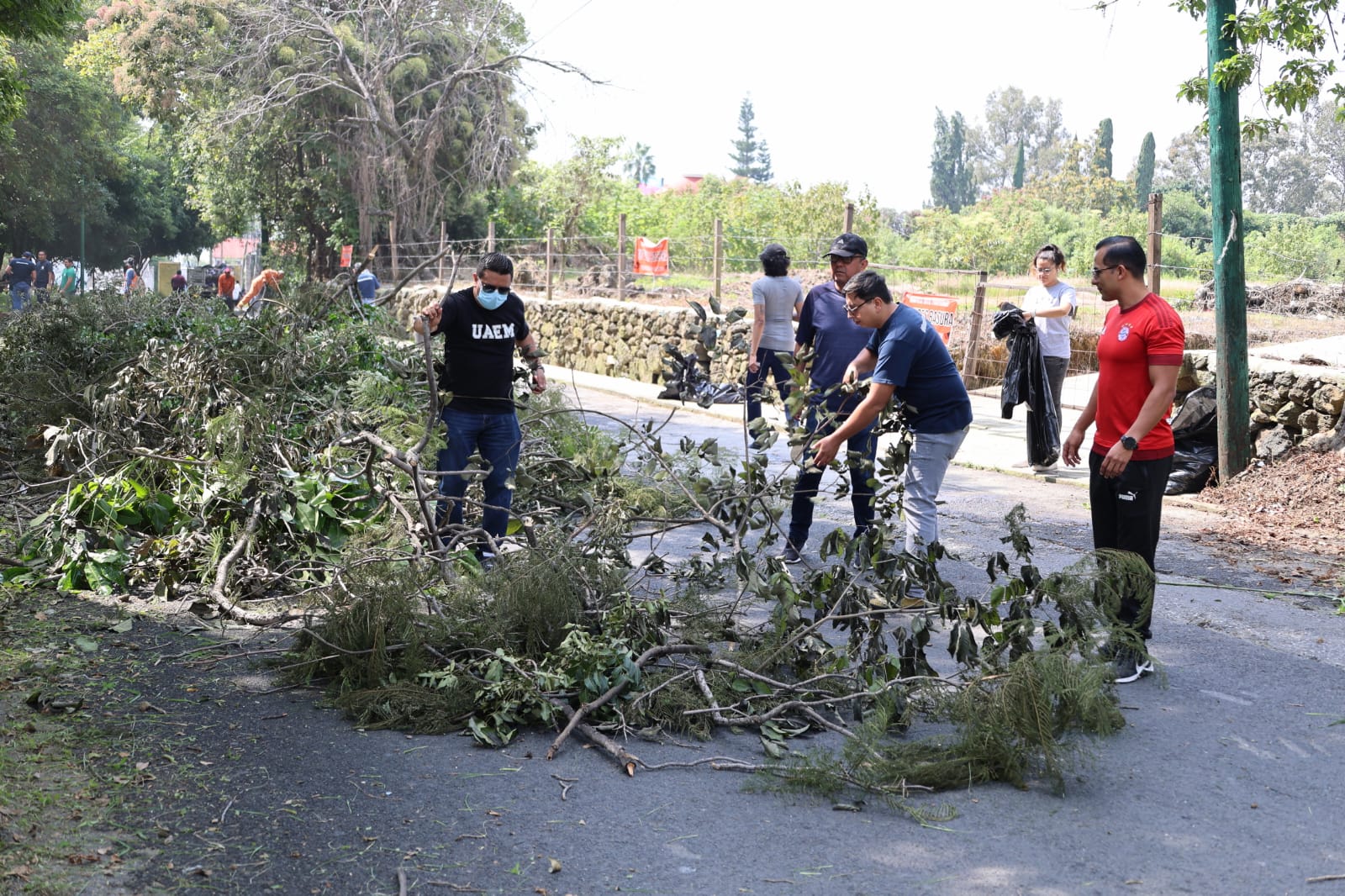 Con el objetivo de reforzar la seguridad al exterior de la Universidad Autónoma del Estado de Morelos (UAEM), dependencias federales, estatales y municipales, así como autoridades universitarias llevaron a cabo este día una jornada de limpieza en el camellón del acceso a la puerta dos de Ciudad Universitaria.