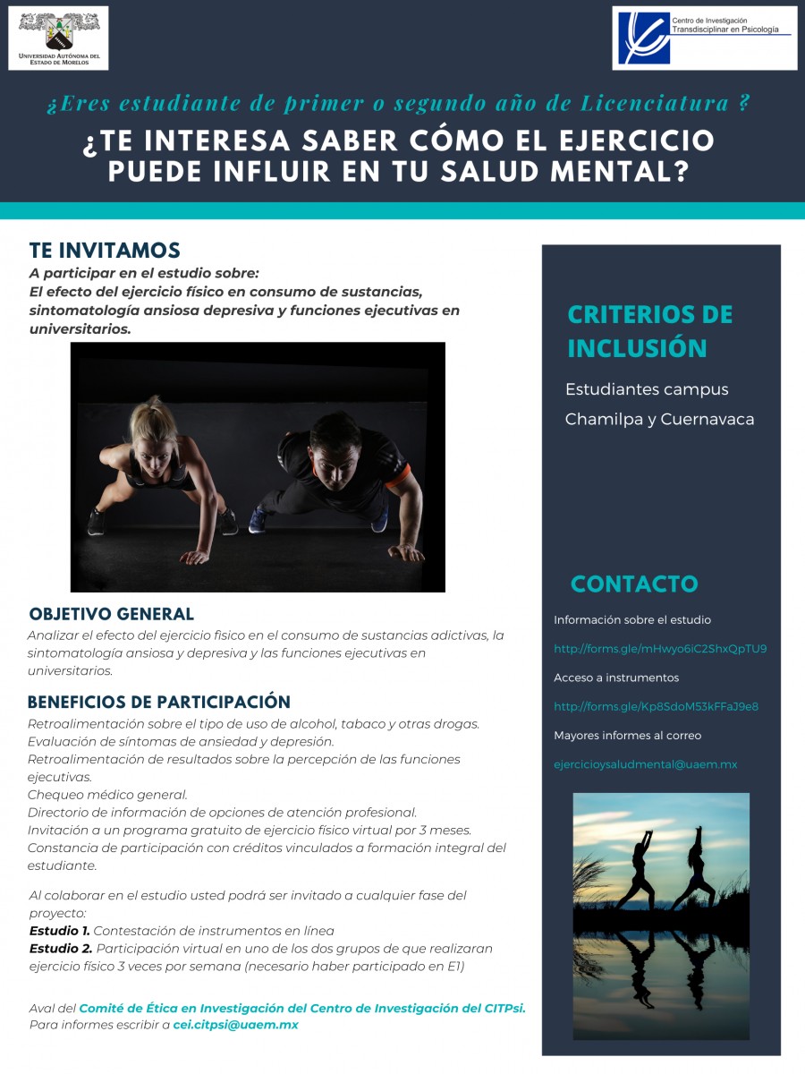 ActividadesEstudio sobre el "Efecto del ejercicio físico en consumo de sustancias , sintomatología ansiosa depresiva y funciones ejecutivas en universitarios"