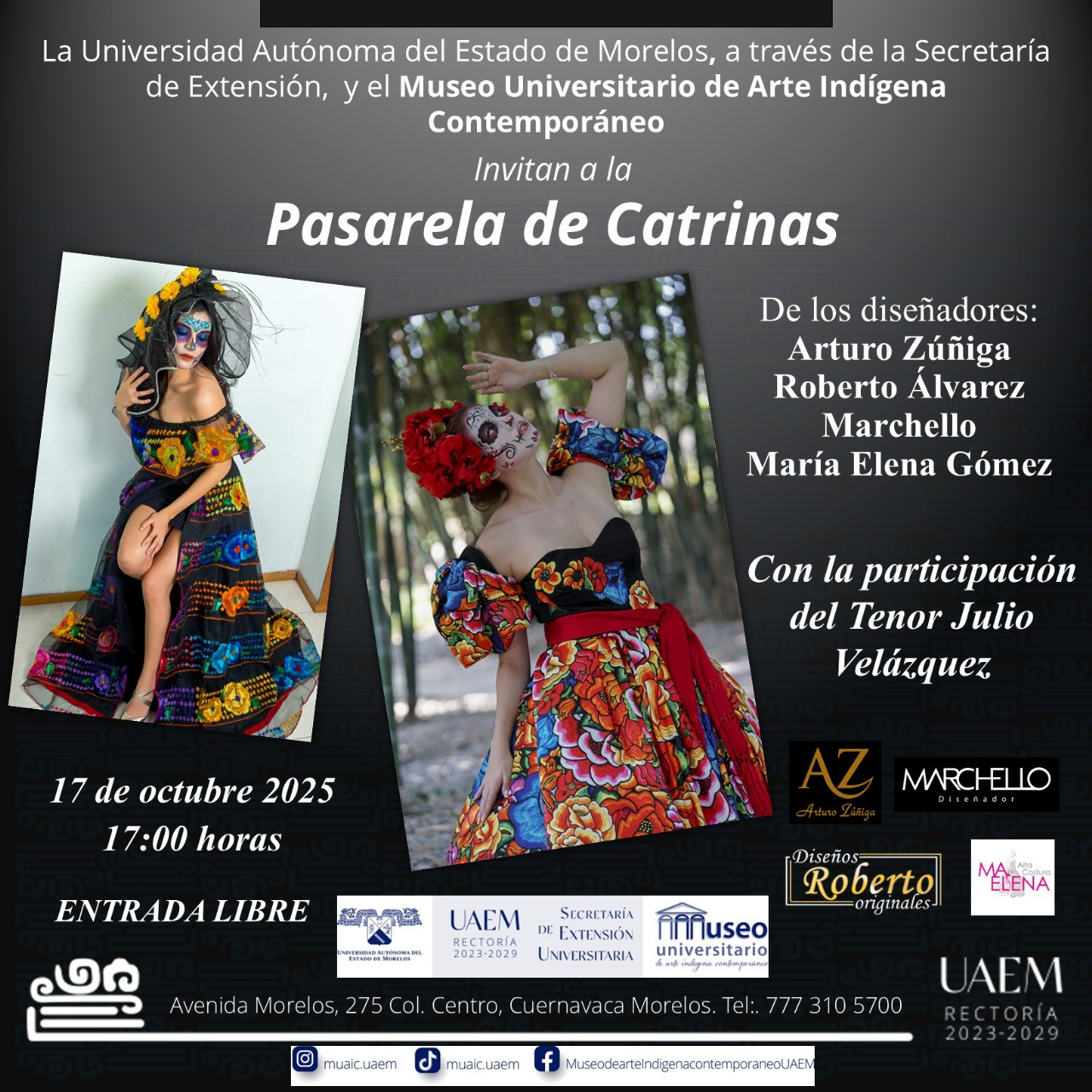 "Pasarela de Catrinas" de los diseñadores: Arturo Zúñiga, Roberto Álvarez, Marchello y María Elena Gómez. Participación especial del Tenor Julio Velázquez.