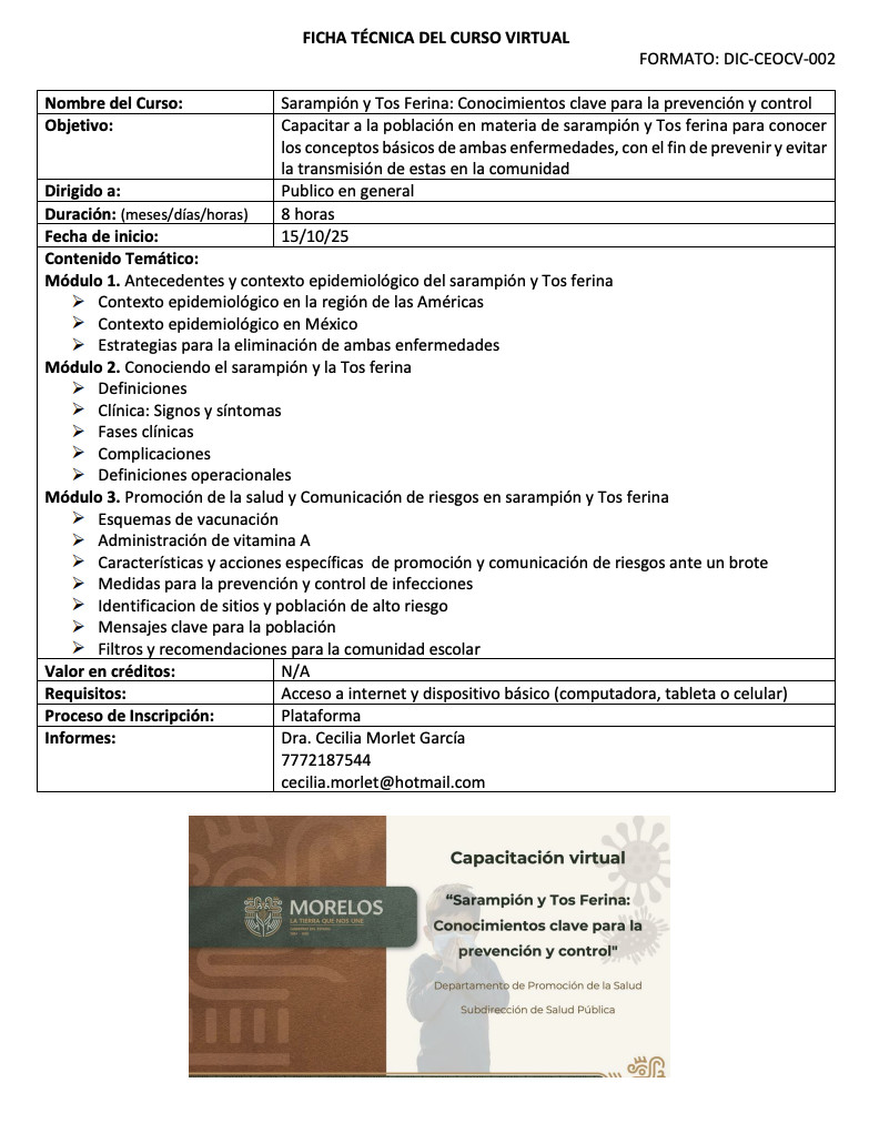 Promoción de la Salud te invita al CURSO VIRTUAL Sarampión y Tos Ferina: Conocimientos clave para la prevención y control