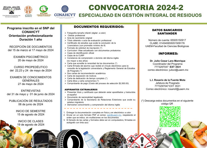 Convocatoria 2024-2 Especialidad en Gestión Integral de Residuos