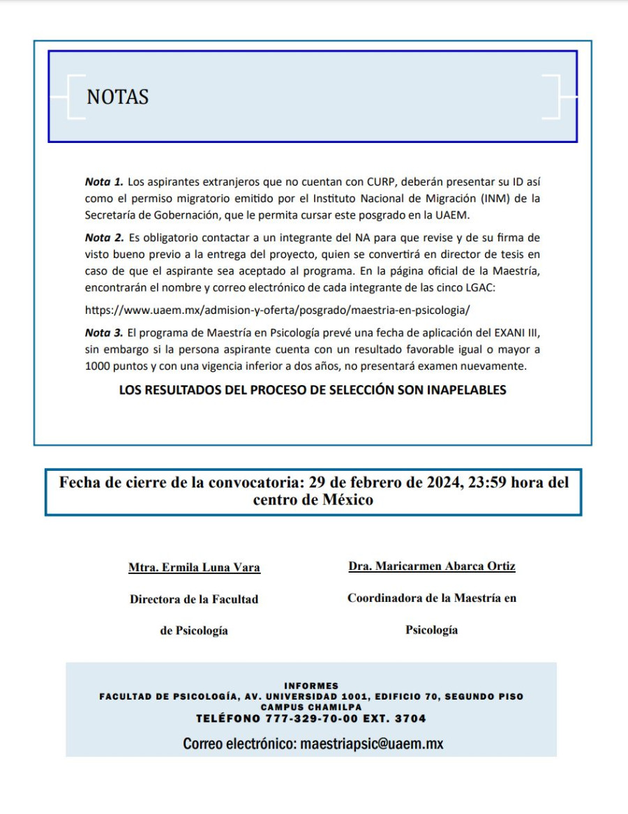 Convocatoria | Maestría en Psicología Generación 2024 -2025