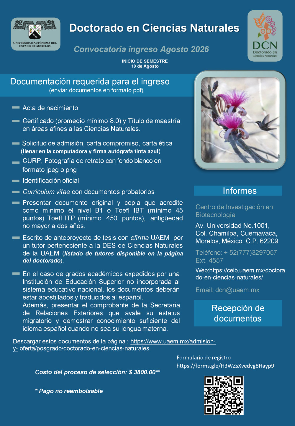 Doctorado en Ciencias Naturales - Convocatoria Ingreso Agosto 2026