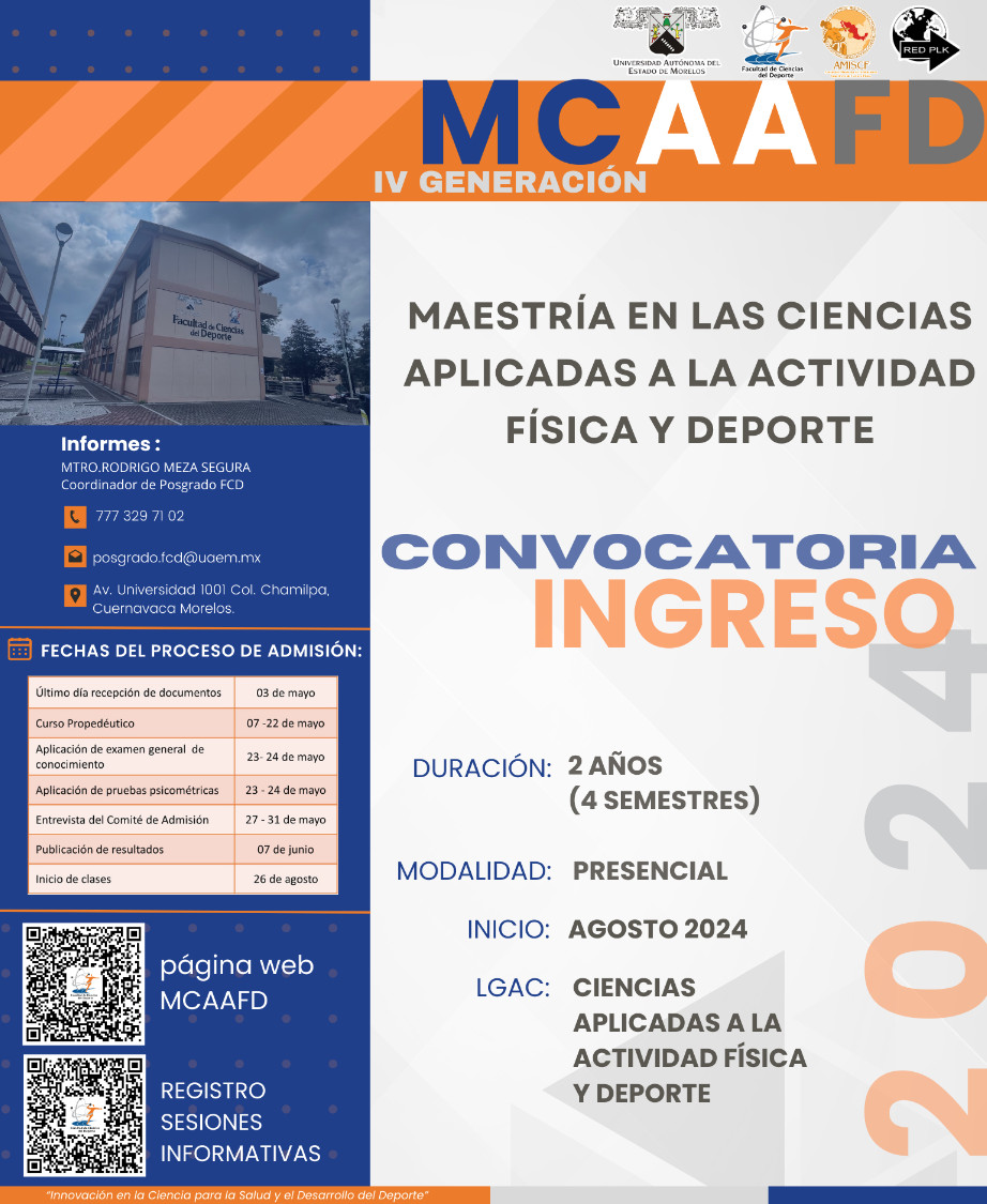 Maestría en las Ciencias Aplicadas a la Actividad Física y Deporte 2024 ARCHIVOS DESCARGABLES Descargar Convocatoria