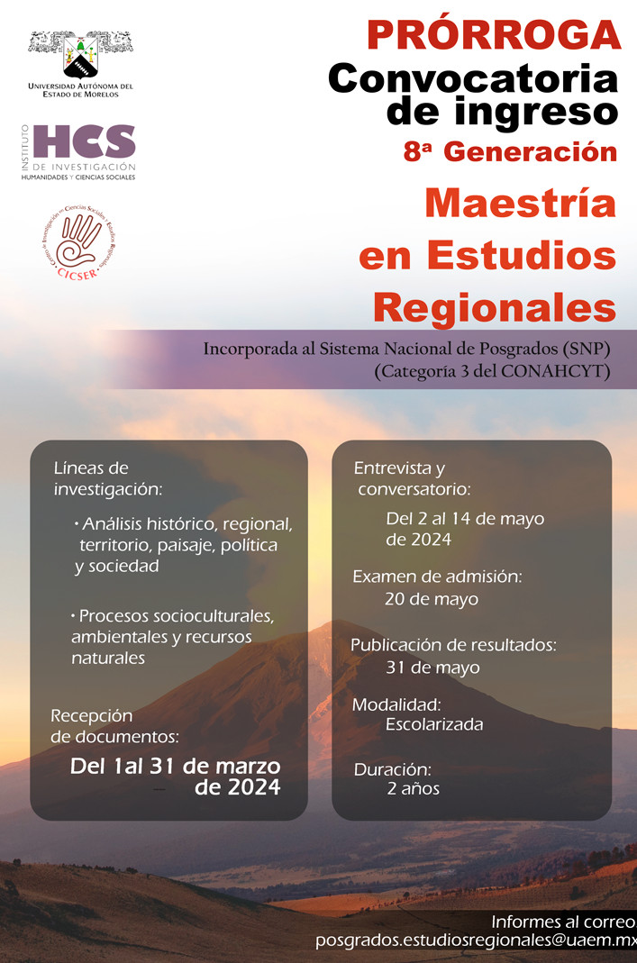 PRÓRROGA | CONVOCATORIA OCTAVA GENERACIÓN MAESTRÍA EN ESTUDIOS REGIONALES ARCHIVOS DESCARGABLES Descargar convocatoria
