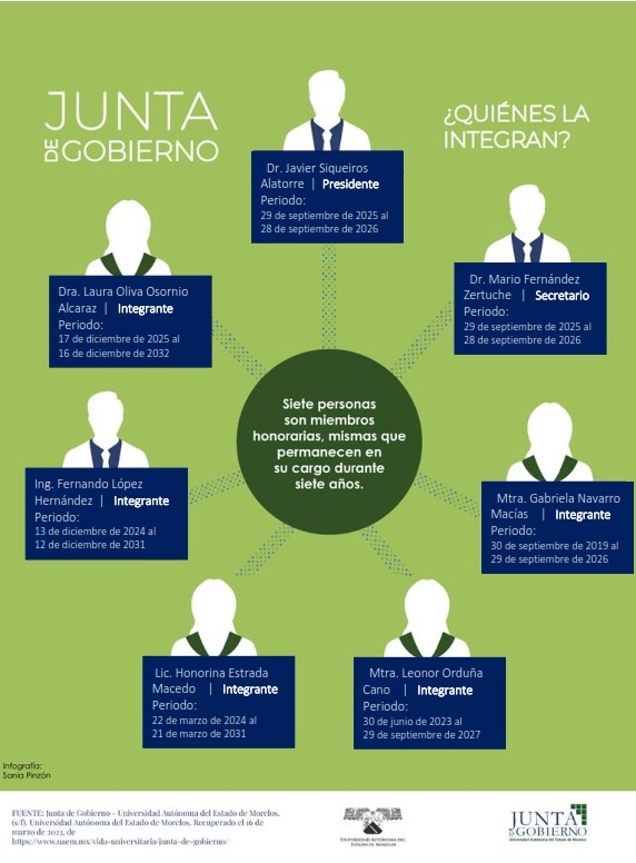 La función primordial de la Junta de Gobierno, es la de formular terna para la designación del Rector; el nombramiento y remoción del Titular del órgano interno de control, así como del auditor externo de la UAEM; además de solucionar los conflictos que surjan entre autoridades.
